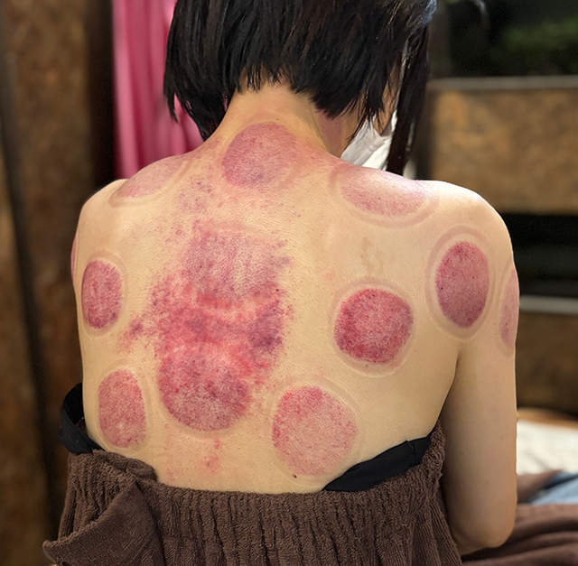 疲れが溜まっている部分は老廃物の滞りで刺激を感じやすく、赤い跡(=瘀血)