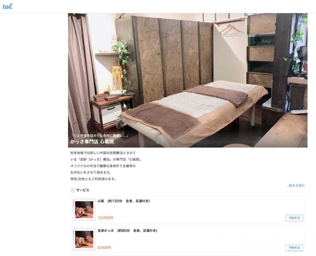心氣院は完全予約制、一人営業のプライベートサロンとなります